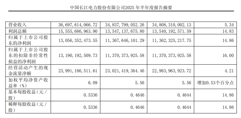 长江电力上半年营业收入366.98亿元,同比增长5.34%,这一数字背后反映的不仅是来水条件的改善,更是公司运营效率的持续提升。